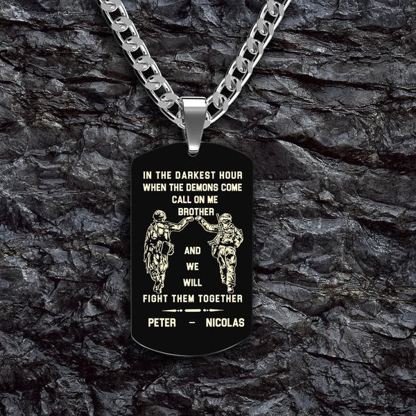 Call On Me Brother Engraved Tag Necklace In The Darkest Hour Gift For Brothers & Friends