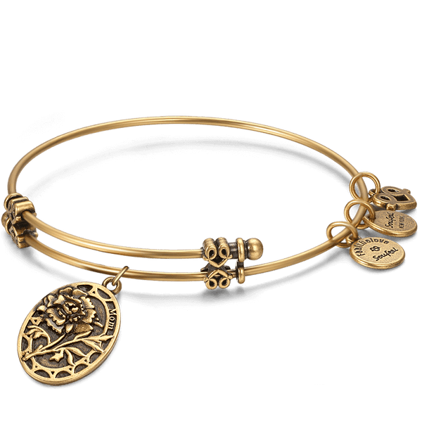Carnation Engraved Charm Bangle Gold Plated Mother'S Day Gift