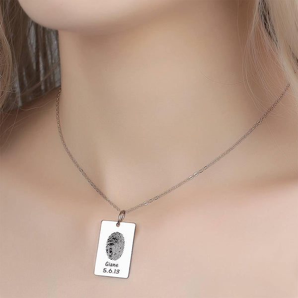 Custom Actual Fingerprint Engraved Photo Necklace Copper in Silver