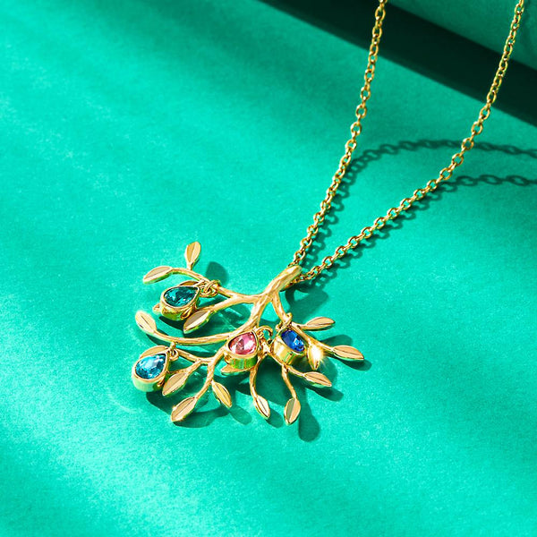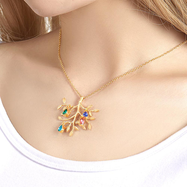 Custom Birthstone Engraved Necklace Family Tree Necklace Gift for Her
