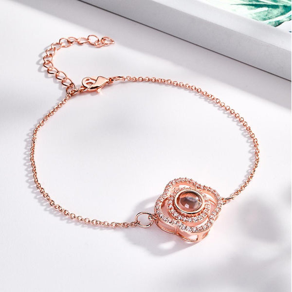 Custom Clover Photo Projection Bracelet Personalized Picture Inside Bracelet Keepsake Jewelry