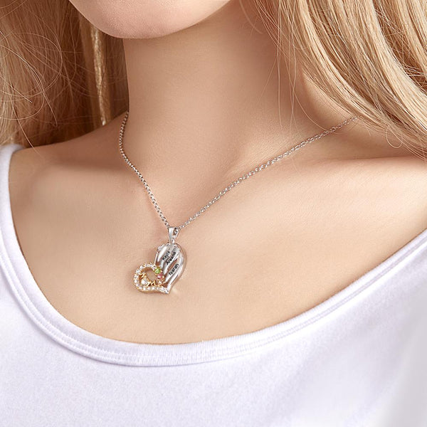 Custom Engraved Birthstone Necklace Heart Pendant Necklace Gift for Mom