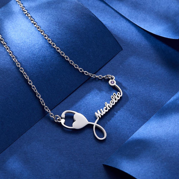 Custom Engraved Birthstone Necklace Stethoscope Gifts