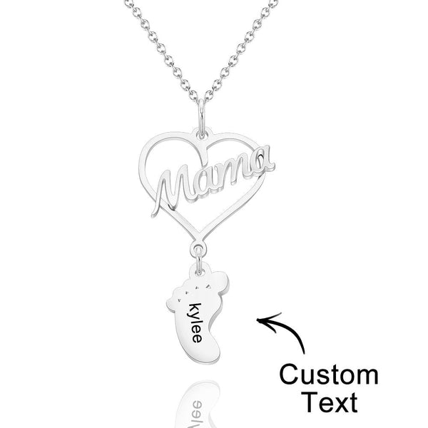 Custom Engraved Name Necklace Love MaMa Heart Baby Feet Charm