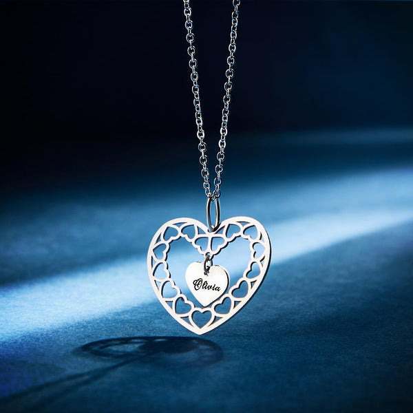 Custom Engraved Necklace heart-shaped necklace to give her a gift. This necklace is composed of multiple hearts. You can customize the text in the center of the necklace. Let's give such a necklace to your lover, your friends and your family. I'm sure they will be surprised and like this gift.