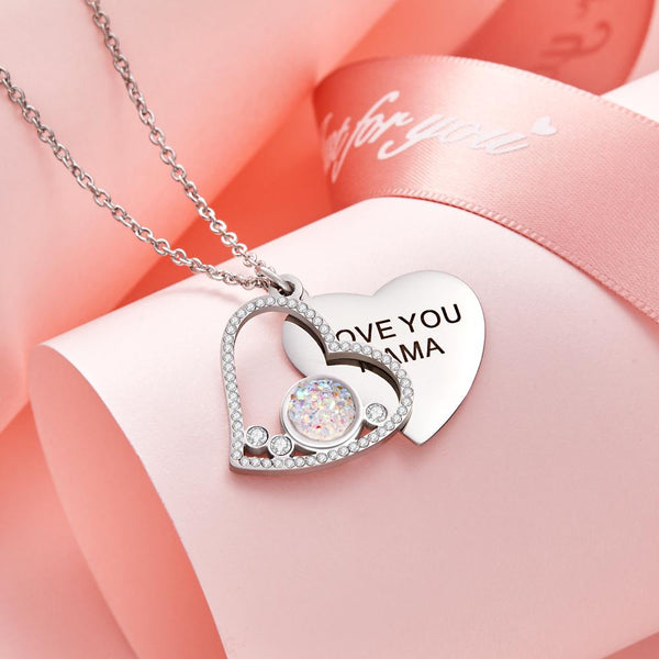 Custom Engraved Necklace Heart Shaped Double Rhinestone Gifts