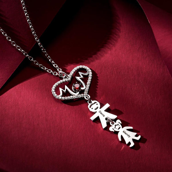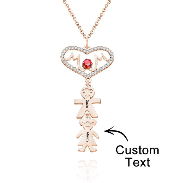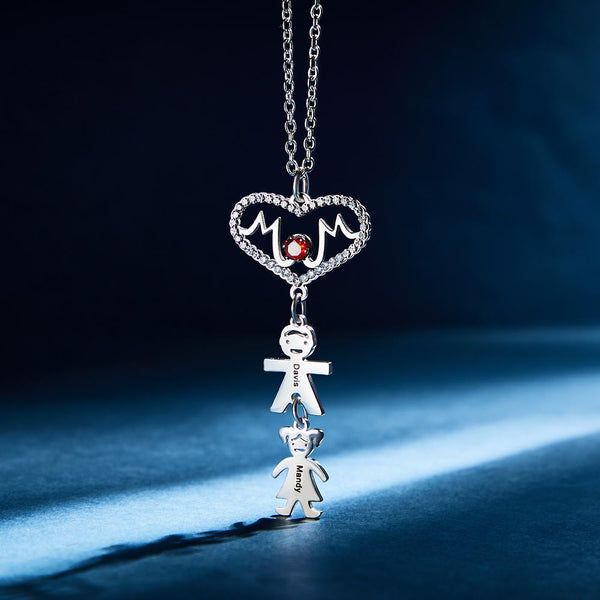 Custom Engraved Necklace heart-shaped mother takes her child's necklace as a gift for her mother. This necklace has a pendant with mother's English. At the same time, there is a little boy and a little girl under the pendant. You can customize text on little boys and girls. Customize such a necklace for your mother. I'm sure she will like it very much.