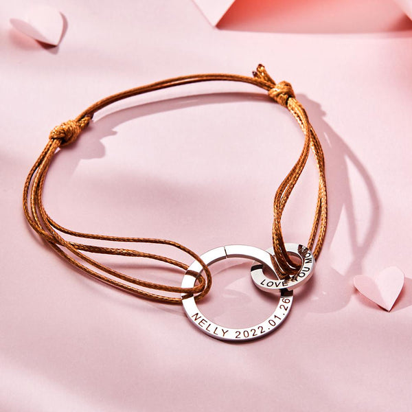 Custom Engraved Two Circles Bracelet Personalized Elegant Bracelet for
