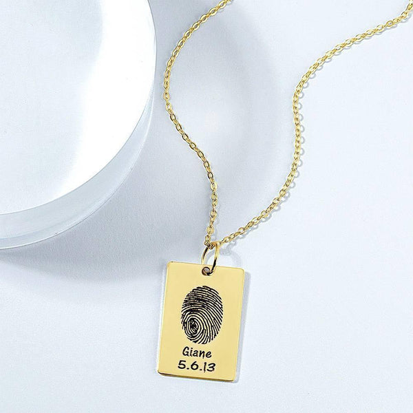Custom Fingerprint Engraved Photo Necklace Copper in 14k Gold Plated