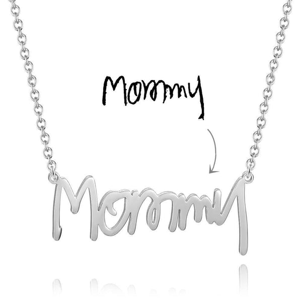 Custom Handwriting Name Necklace Platinum Plated Silver