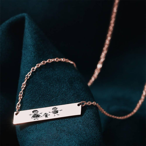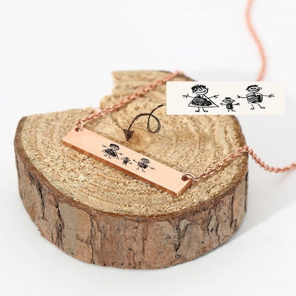 Custom Handwriting Photo Neckalce Children Artwork Bar Neckalce Copper in Rose Gold Plated