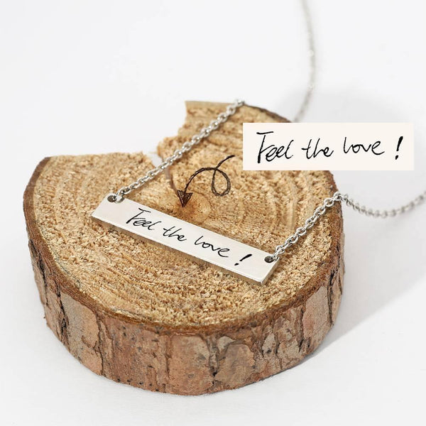 Custom Handwriting Necklace Engraved Handwriting Bar Necklace Copper i