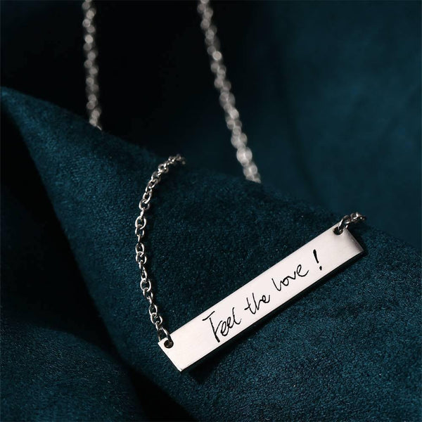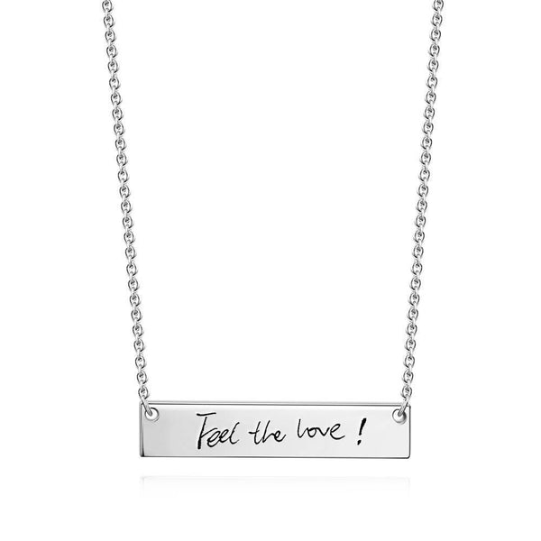 Custom Handwriting Necklace Engraved Handwriting Bar Necklace Copper in Silver