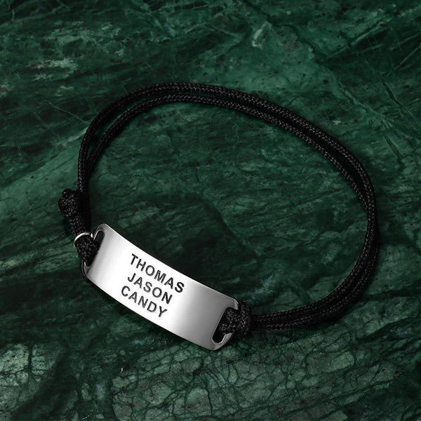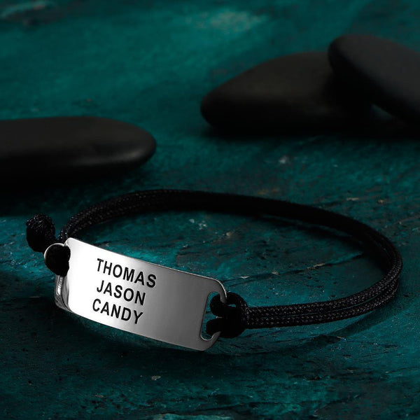 Men's Leather Bracelet Custom Men's Bracelet Engraved Bent card Bracelet Gift for Best Friend -Silver