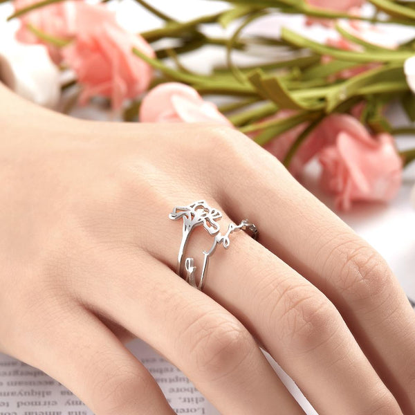 Custom Name Birth Month Flower Ring Dainty Floral Jewelry Birthday Gift April Daisy