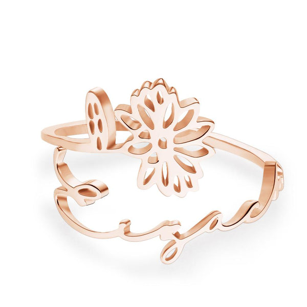 Custom Name Birth Month Flower Ring Dainty Floral Jewelry Birthday Gift December Narcissus