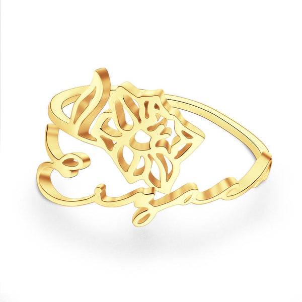 Custom Name Birth Month Flower Ring Dainty Floral Jewelry Birthday Gift July Water Lily