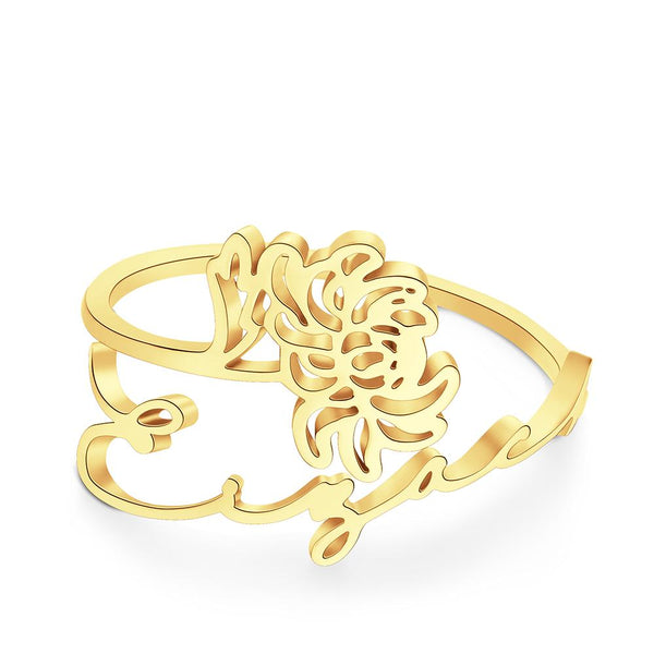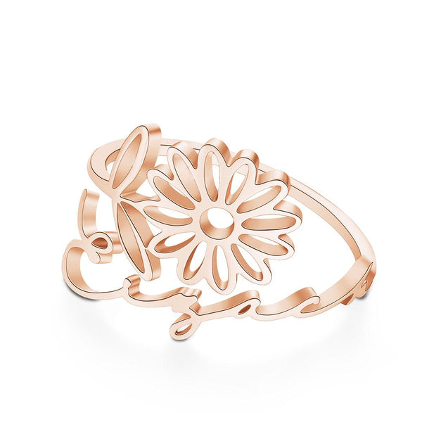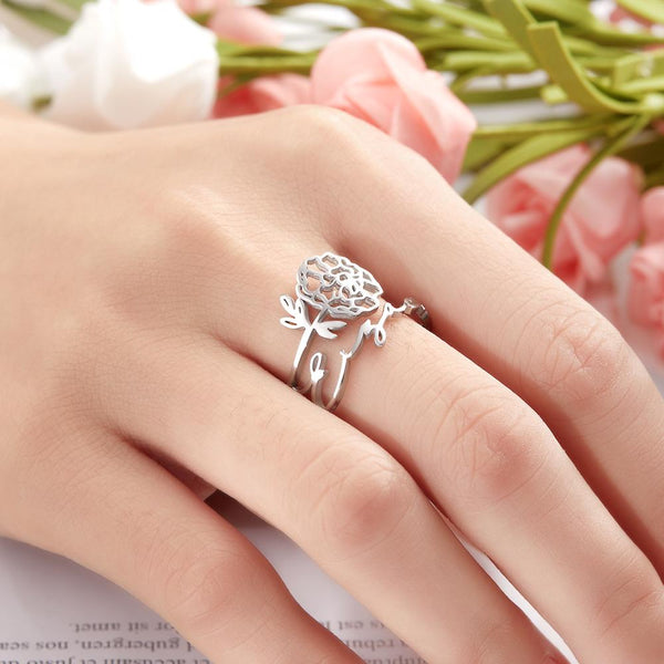 Custom Name Birth Month Flower Ring Dainty Floral Jewelry Birthday Gift June Rose
