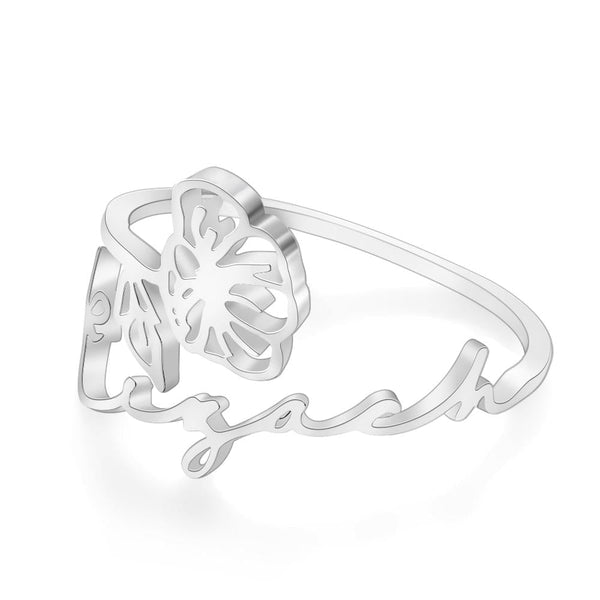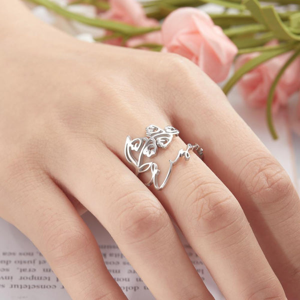 Custom Name Birth Month Flower Ring Dainty Floral Jewelry Birthday Gift May Lily