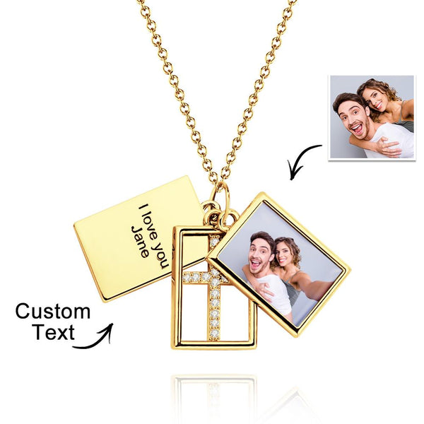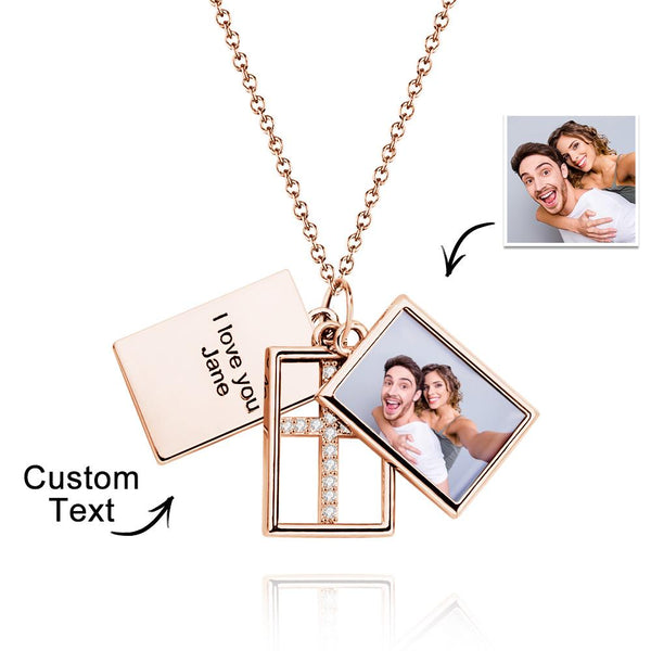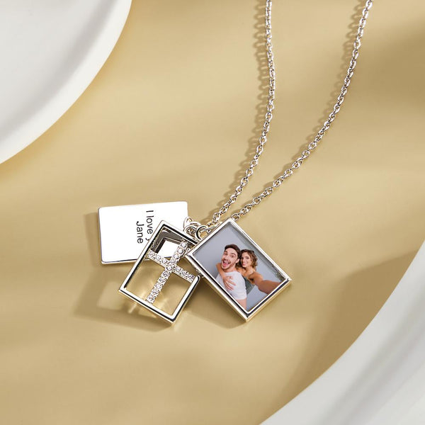 Custom Photo Engraved Necklace Multi-layer Creative Cross Gifts