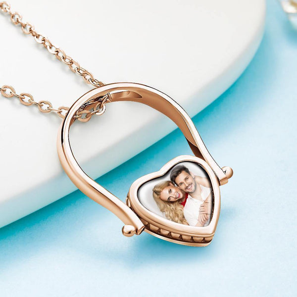 Custom Photo Necklace Photo Ring Personalized Gift For Couple Rose Gold