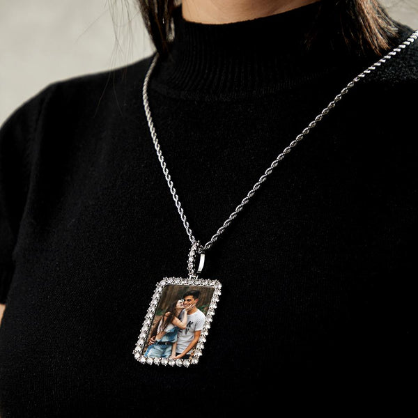Custom Photo Necklace Square Diamond Border Sweater Chain Gifts