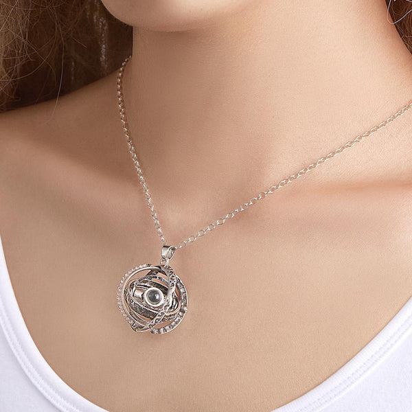 Custom photo projection Necklace astronomical Ball Necklace is a gift for her. The appearance of this necklace is the shape of an astronomical ball, which can be unfolded. It is a very exquisite astronomical ball. This necklace is available in gold and silver. You can choose one of your favorite colors for photo customization. Believe me, when she receives such a gift, she will like it very much