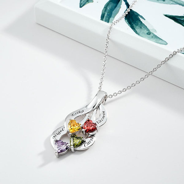 Engravable Vintage Necklace With Heart Birthstone Pendant Necklace For Her