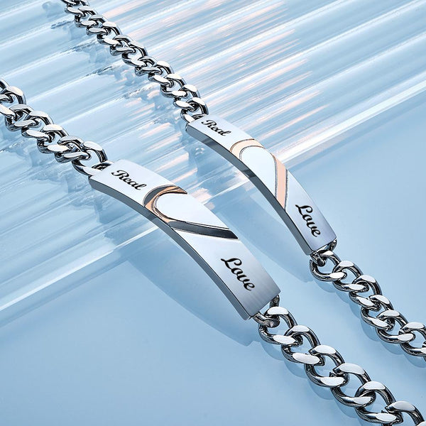 Engraved Couple Bracelet Personalized Love Heart Wide Chain Bracelet Valentine's Day Gifts