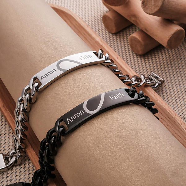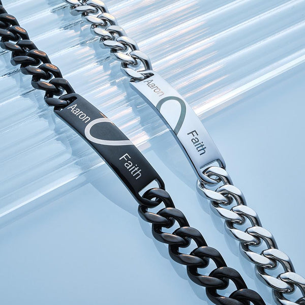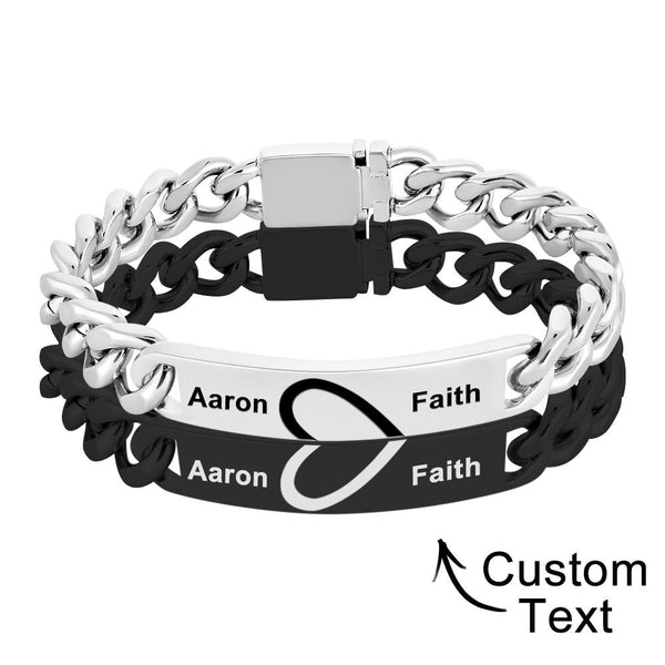 Engraved Couple Bracelet Personalized Unique Love Heart Wide Chain Bracelet Valentine's Day Gifts