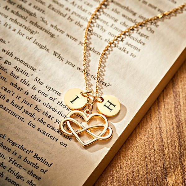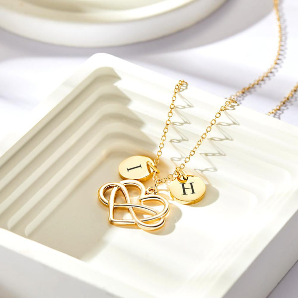 Unique heart necklace with initial pendant and infinity symbolizing "I love you always and forever", it's meaningful jewelry as a gift for Valentine's day, Mother's day, or Christmas. Initial necklace with a different meaning for your love, heart means we are always connected, and infinity means the love between us never ends. This necklace reminds our hearts will always connect with full love.