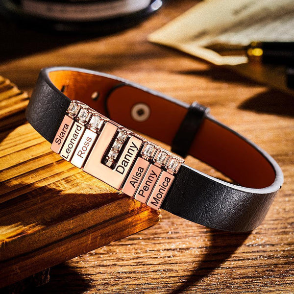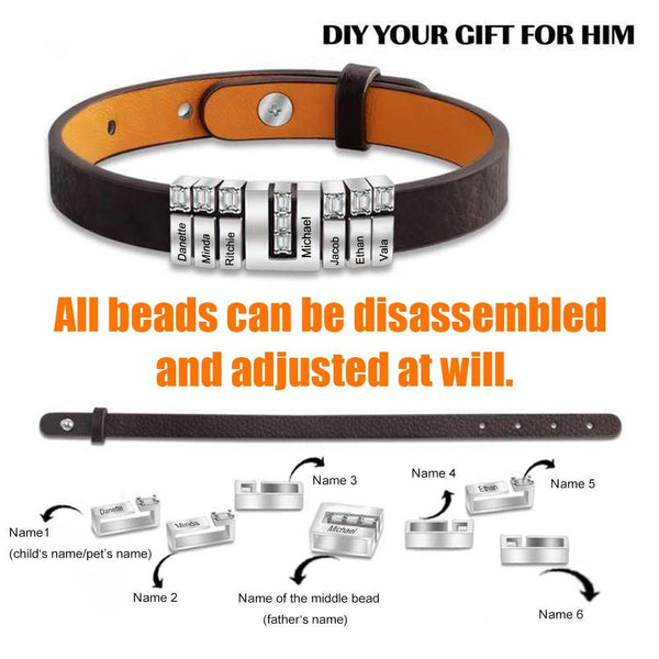 Men's Personalized Leather Bracelet With Adjustable Diamond Beads, Perfect Gift For Father's Day Anti-oxidation Stainless Steel
