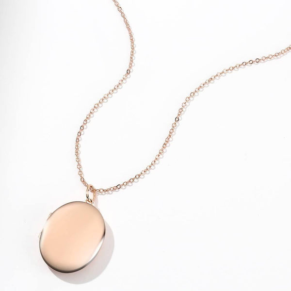 Oval Photo Locket Necklace With Engraving Rose Gold Plated, Engraved Necklace Bar Necklace Name Necklace