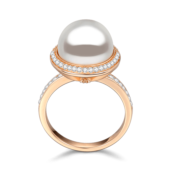 Pearl Rose Gold Wedding Promise Ring With Zircon For Women