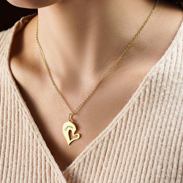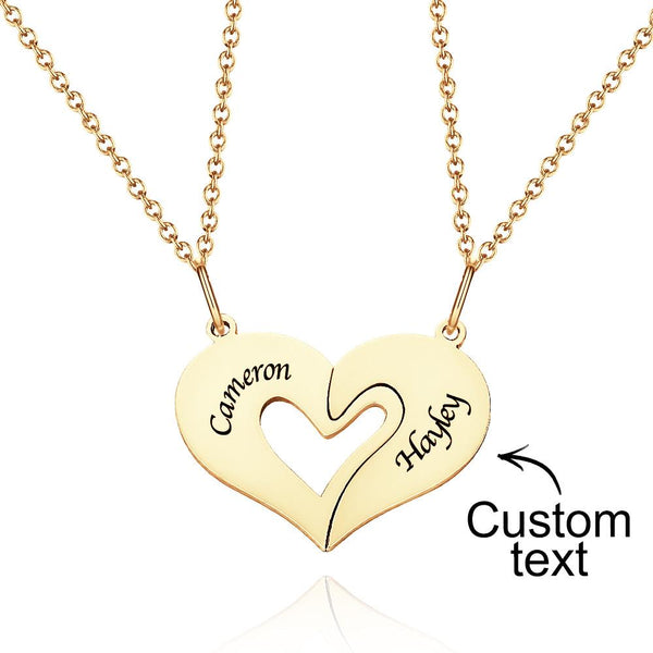 Matching a couple's jewelry is a modern and stylish way to express your love for each other. Personalized breakable heart name necklace for couples. Share your love with this necklace. Each half of this breakable heart can be engraved with a personalized name. With their name around your neck, show off your love with this personalized gift!