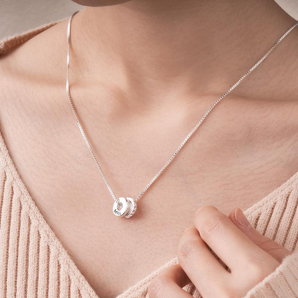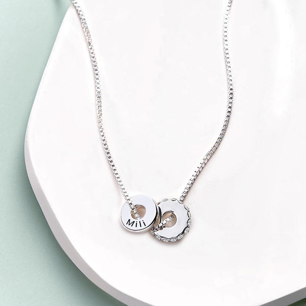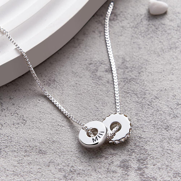 Personalized Engraved Rhinestones Circle Necklace Delicate Pendant Jewelry For Her