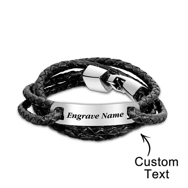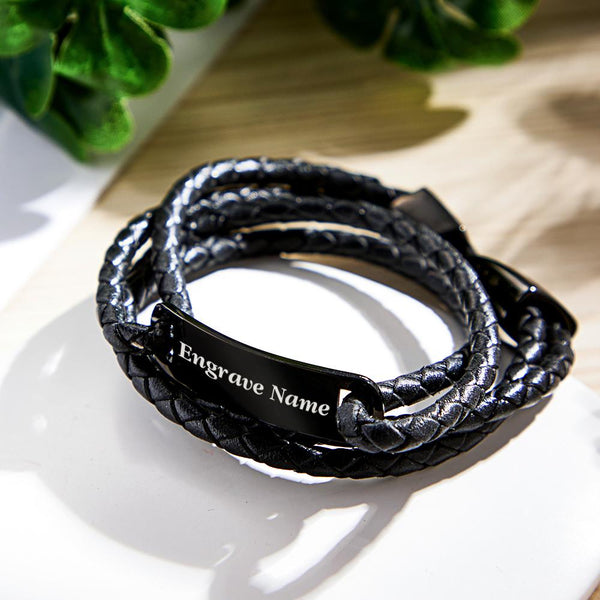 Personalized Leather Bracelet With Name Engraved Multi-Wrap Bracelet Gifts For Him