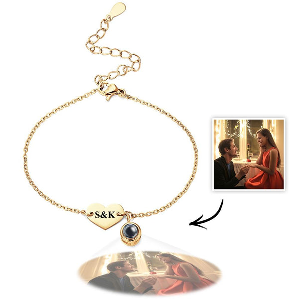Personalized Photo Projection Bracelet Engraved Initials Heart Shaped Bracelet Gift For Her