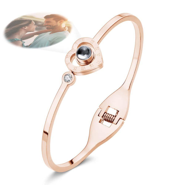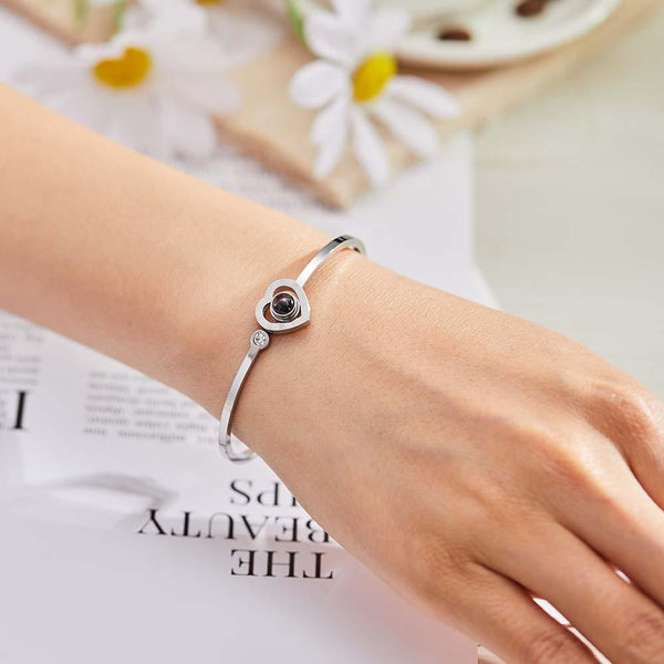 Personalized Photo Projection Heart-Shaped Bracelet Round Free Adjustment Bracelet for Her