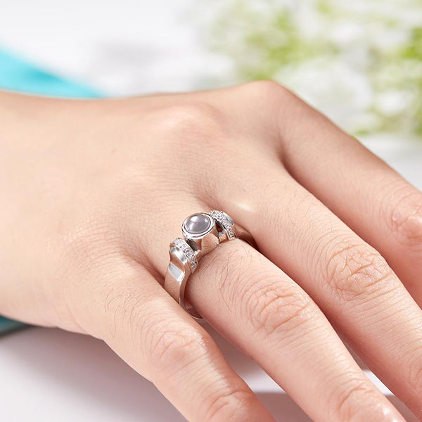 Tell someone special how much you love them with this elegant photo-projecting ring. Simply hold the ring up to a light source, and it will project the photo. A perfect gift for birthdays, anniversaries, weddings, Mother's Day, Valentine's Day, and Christmas Day. It's recommended to remove the ring when around water or in any circumstances where the ring may get water or body oils on it.