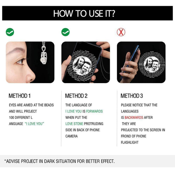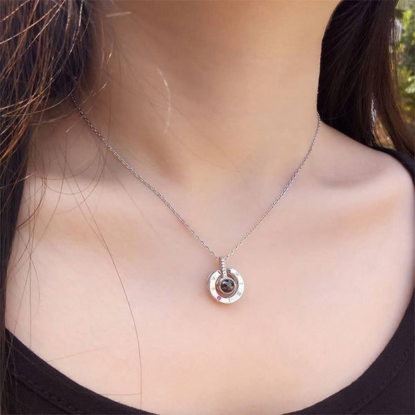 Father‘s Day Gifts Personalized Photo With 100 Languages Says I Love You Projection Necklace Round Silver