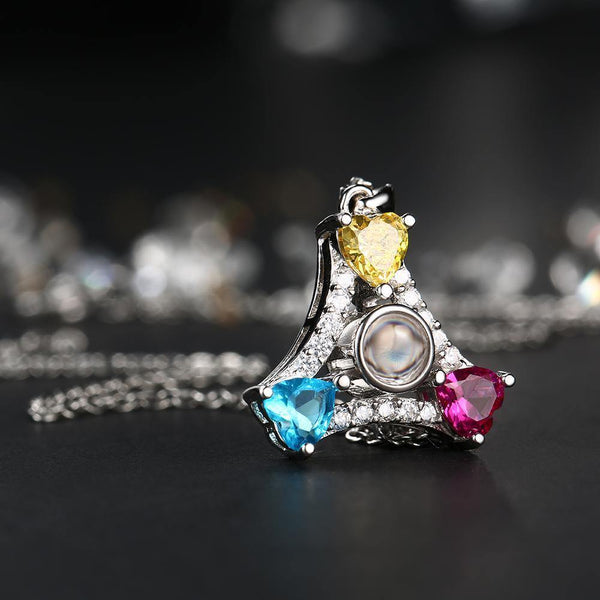 Personalized Projection Sector Three Colors Crystal Photo Necklace - Silver