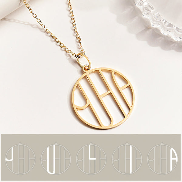 This monogram name necklace is?unique for every piece. You enter the name and our talented designer design it for you.?By combining letters into a special logo, this necklace becomes a meaningful accessory that the recipient will cherish for years to come.