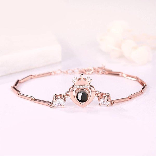 Projection Projection Bracelet I Love You Bracelet in 100 Languages Silver Crown with Heart