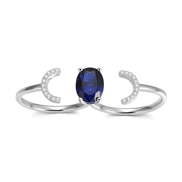 Sapphire Ring Christmas Gift With Zirzon Two Fingers For Women