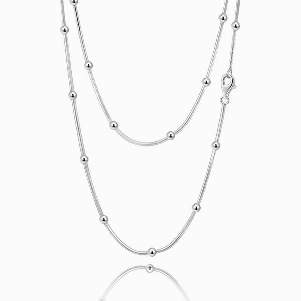Silver Necklace With Dots Two Chains For Girl