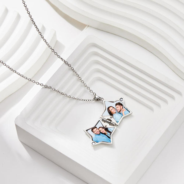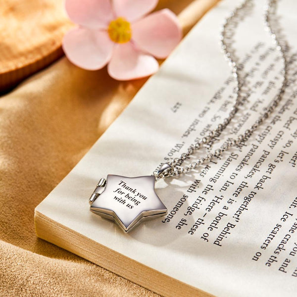 Star Locket Photo Necklace Personalized Engraved Memorial Picture Pendant Gift For Her