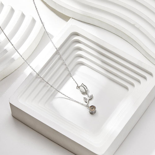 Tulip Photo Projection Necklace Personalized Elegant Flower Pendant Jewelry Gift for Her
