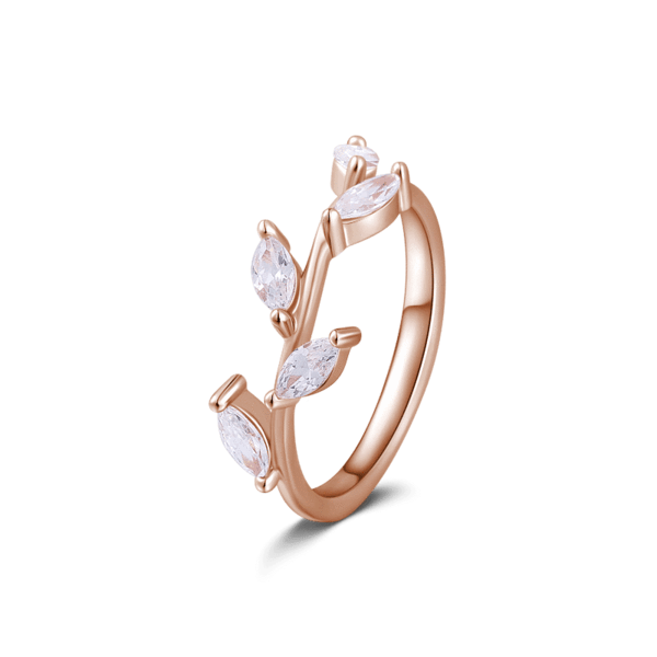 Vine Rose Gold Halo Ring Christmas Gift 925 Sterling Silver With Zircon For Girls