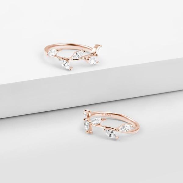 Vine Rose Gold Halo Ring 925 Sterling Silver With Zircon For Girls